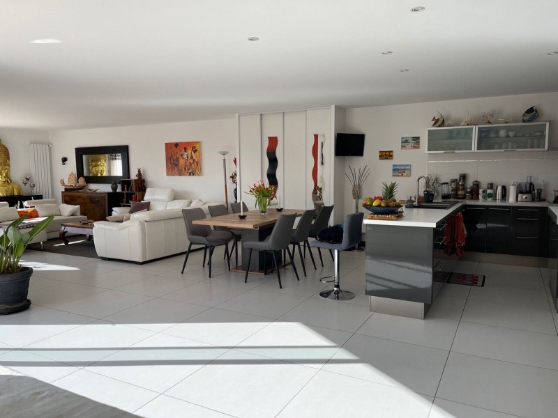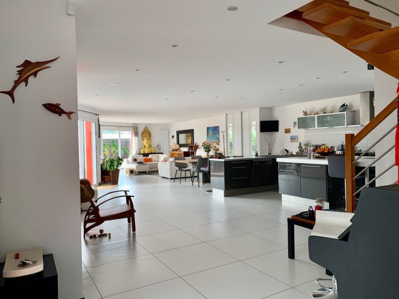 C'est au sein d'un chemin privé, en toute intimité, que l'on retrouve cette maison entièrement clos de mur. La maison développe une surface habitable proche des 200 m² bénéficiant d'une grande pièce de vie ouverte vers l'extérieur, une impression dedans/dehors maîtrisée. Egalement tout le confort nécessaire pour une vie de plain-pied au quotidien, espaces de rangements, suite parentale, cuisine ouverte, ...